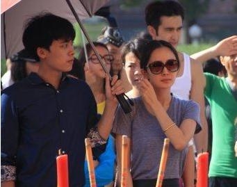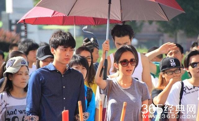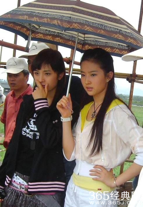 原来和刘亦菲在同一个剧组的时候,两人也曾经友好的分享同一把伞!