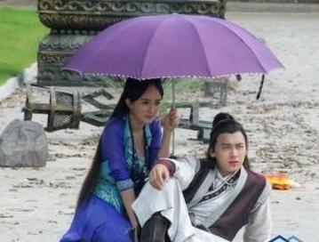 拍戏间隙休息也要打伞,还不忘给李易峰也顺手遮一下!