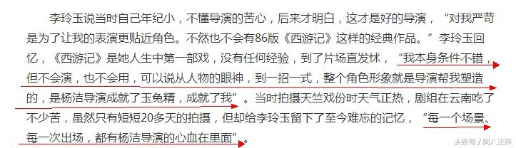 李玲玉曾坦言:“我本身条件不错,但不会演,可以说从人物的眼神,到一招一式,整个角色形象就是导演帮我塑造的,是杨洁导演成就了玉兔精,成就了我”