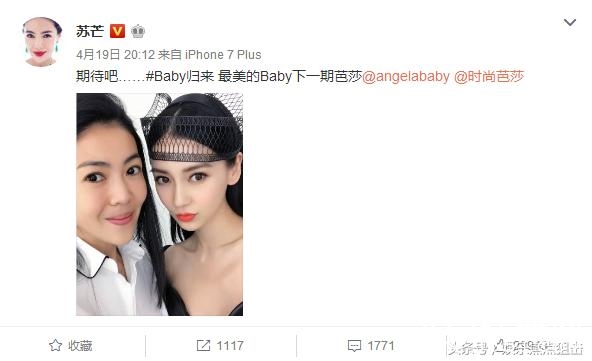 在4月19日,苏芒在其微博上晒出了和杨颖的工作照,里面的杨颖皮肤保养得很好,身材有点儿偏瘦。于是网友也开启了脑洞大开模式:完全看不出她生过孩子啊、生完孩子还能保持这样的身材啊!