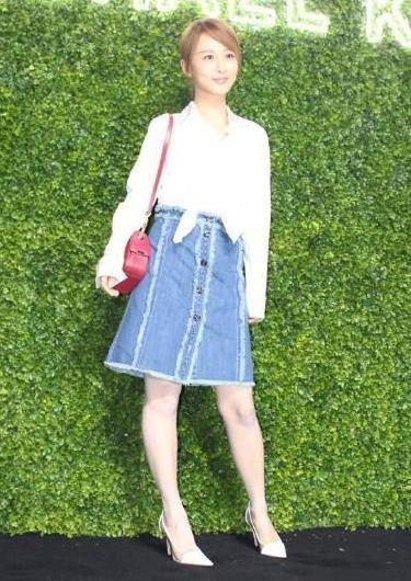 而某一次被采访的时候穿着无袖条纹衣裙,露出的大脑门还有浓浓的妆容,整个人毫无年轻活力和精气,完全是一副大妈模样。