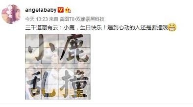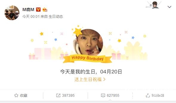 今天是鹿晗生日,众明星纷纷在微博上送出了生日祝福,杨幂祝他“鹿长生,生辰快乐,长生不老,福如东海,寿比南山,永远好看!”;Angelababy则为小鹿的终身大事操起了心,祝他早日找到心动对象;跑男亲友团邓超、陈赫的生日祝福当然也没漏下~