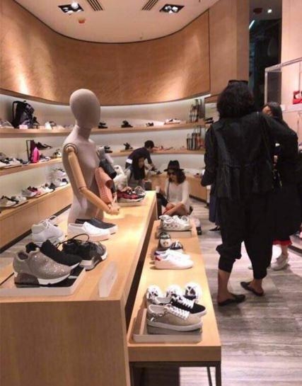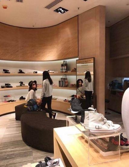此前章子怡带继女逛商场,在一家鞋店,章子怡帮小苹果试鞋子。小苹果一直询问章子怡的意见,可以看出两人关系很不错。