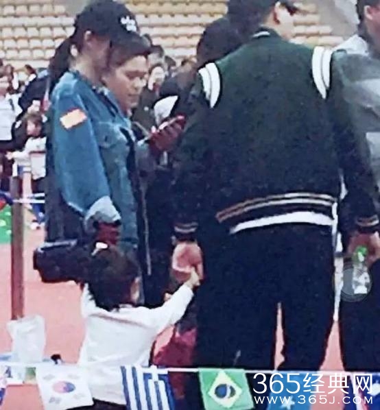 一家人一起参加亲子运动会,一人一边紧紧牵着小糯米的手,画面看着好温馨~