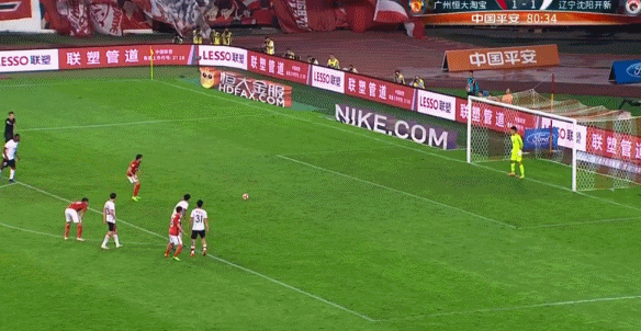 第80分钟,张文钊边路拿球内切,被刘尚坤禁区内不冷静的倒地铲球直接将张文钊放倒在地,主裁判再次判罚点球,高拉特主罚命中,广州恒大2-1逆转比分。