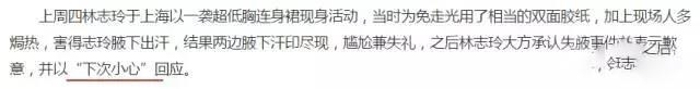 她说自己会注意,然而......看来“湿腋下”这个问题不是自己能够控制得了的呀,心疼志玲姐姐,那么温柔大方的女孩子,怎么会过不了这道“腋下”坎呢?