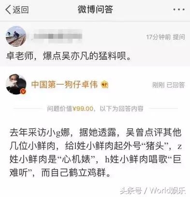 前天,有网友让卓伟爆一点关于吴亦凡的料,卓伟就说了一点吴亦凡私下里对几位前成员的评价。