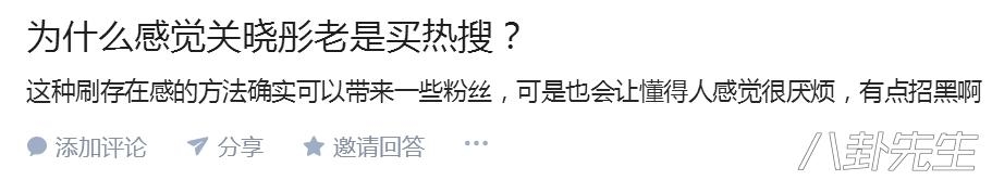 但关晓彤也不甘落后,成为了新晋“热搜小公举”,高考成绩公布、大学录取、拍毕业照、上春晚甚至吃个米粉,都能上热搜。对于一个新人来讲,这是营销痕迹比较重的行为 ,以至于很多人会觉得关晓彤总是买热搜▼
