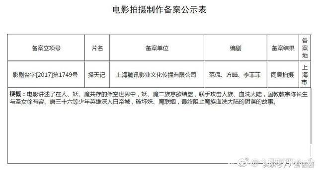 《择天记》电影版即将开拍,钟澍佳执导,杨晓培担任总制片人,张巍任文学总策划,楚惜刀等任编剧,也就是说是电视剧版《择天记》原创团队;目前主演已经暂定井柏然,后续演员正在接洽中。目前由鹿晗、古力娜扎主演的电视剧版正在热播,收视率一直保持1以上,趁这热度上电影版时间也刚刚好。