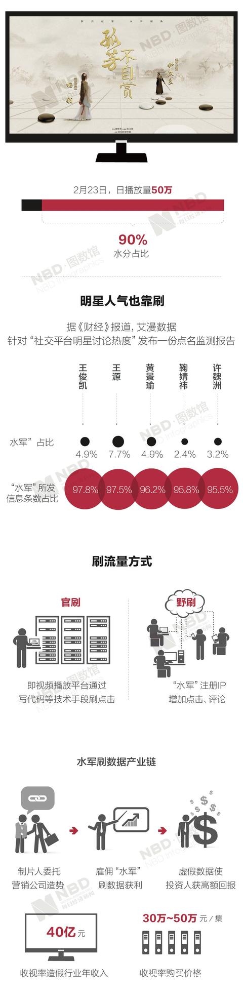 近日,央视报道了影视行业播放量数据造假现象,多部热门电视剧及多个播放平台雇“水军”刷流量造假内幕被搬到聚光灯下。