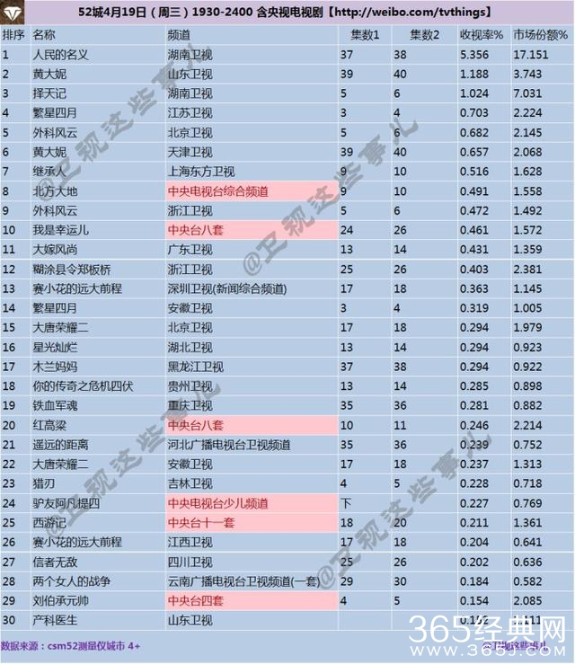 4月19日电视剧收视率