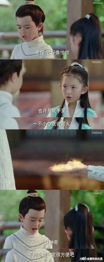 你说师父和师兄都这样了,难道陈长生能独善其身吗?可以说,他比师父和师兄还不会聊天。小时候和徐有容见面时,小姑娘告诉他自己手心一不小心就会冒火,结果陈长生来了句:“那你平时做饭一定很方便吧?”