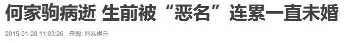 据悉,何家驹近年一直备受糖尿病困扰。不久又患上肺积水,没有细心调养转变成肺炎,久治不愈,还要带病工作。孤苦一人,没人照顾,身边只有一条狗陪伴,等到最后才送到医院治疗,可惜回天泛力,终于在15年1月27日去世了。