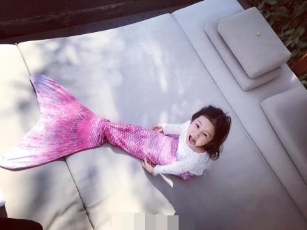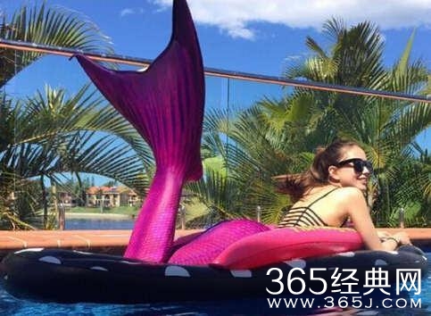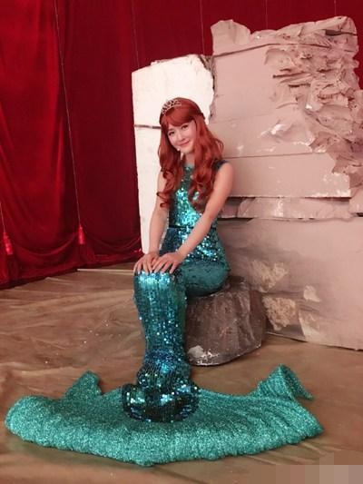 太阳女神谢娜也有美人鱼的打扮,这个鱼尾巴也是超级大呀。