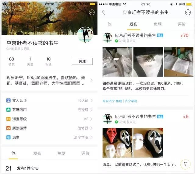 段修野还清楚的记得,他从闲鱼上买来的第一件物品是一条时髦的裤子,只花了60块,上面有五颜六色的口袋。这条裤子很“扎眼”,班上同学看到后都问他是在哪儿买来的。他当回答说,“闲鱼买来的,你们买不到。”同学只是略表遗憾,甚至还有些羡慕。