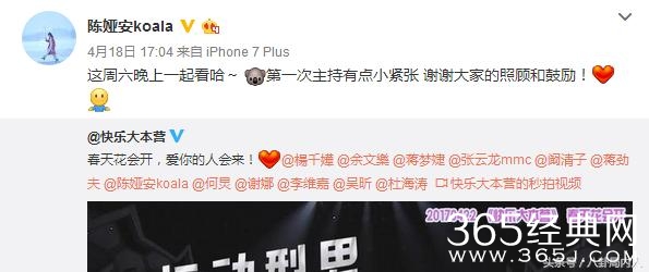 2017年4月22日的快乐大本营预告片曝光,网友纷纷说看到了新面孔与何炅一起主持,谢娜马上要留学了,所以快本要着手培养新主持人啦?↓↓↓