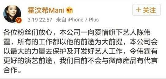 陈伟霆的经纪人前段时间被粉丝骂惨了,起因是一起代言。