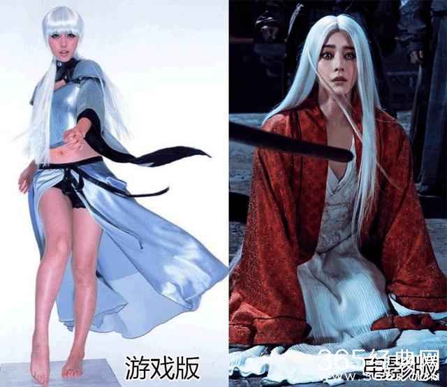 同样是范冰冰的白发魔女系列,电影版的是楚楚可怜小魔女,游戏版是红皮肤粗腿怪阿姨。