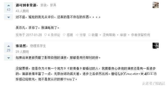 而面对网友对吴亦凡演技各种吐槽,吴亦凡也曾表示,无论怎样被黑,都会坚持做自己,别人黑你,证明你还有进步空间,没达到粉丝的期望。
