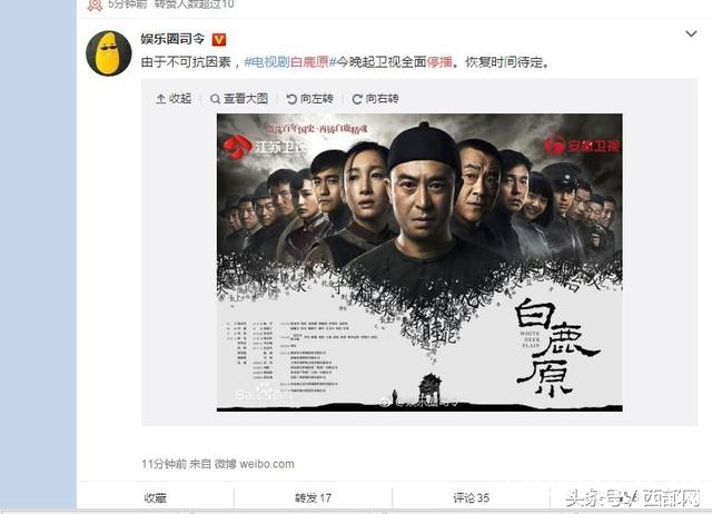 记者发现,4月17日晚,原本该播《白鹿原》的江苏卫视改播电影《港囧》。