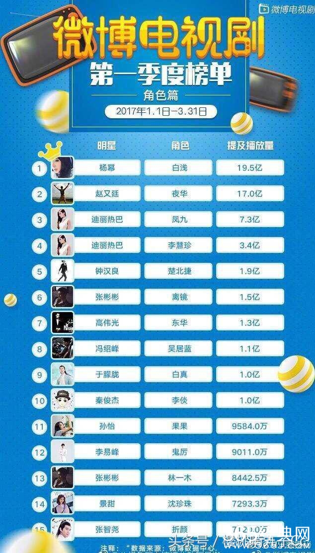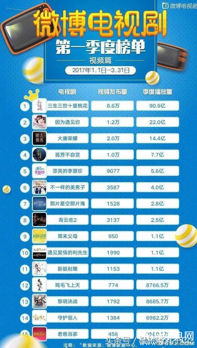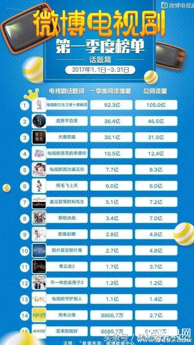微博电视剧季度榜出炉,姑姑杨幂和夜华赵又廷及三生三世十里桃花在所有分类榜单里都占据头名!数据说明真是现象级的大爆剧啊!其他上榜电视剧你看过没有?