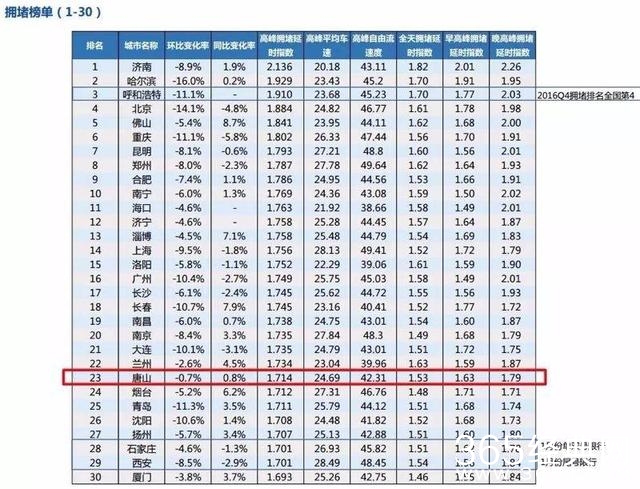 报告公布了2017年第一季度中国堵城排行榜,唐山排名在第23位。