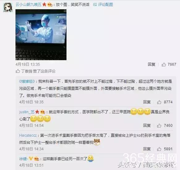 事实上——“手放的就不对上不能过肩,下不能过胸,超过这两个地方就是污染区域,再一个戴手套只能摸里面不能摸外面,外面要接触手术区域,他这么摸外面早污染了。做完手术有可能伤口会感染”