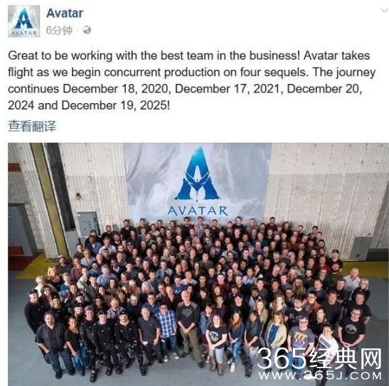 让全球影迷盼星星盼月亮等了近9年的《阿凡达》续集,昨晚终于有了好消息!北京时间4月22日晚,《阿凡达》官方Facebook发布消息:经过长期筹备,詹姆斯·卡梅隆已开始制作《阿凡达》续集,而且一口气要拍4部!上映时间分别为:《阿凡达2》2020年12月18日,《阿凡达3》2021年12月17日,《阿凡达4》2024年12月20日,《阿凡达5》2025年12月19日。
