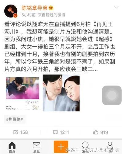 可是就在今天,陈铭章导演说,焦焦的档期已经排满,而且他自己的工作也排到了明年。铁三角的搭档可能是凑不齐了。