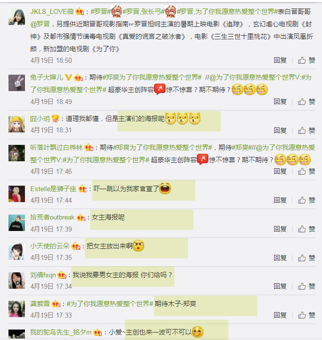 前期宣传由罗晋和郑爽主演的新剧《为了你我愿意热爱整个世界》最近已经低调开拍了好几天,被复旦大学爆料罗晋在剧中的三少初见木子戏份已经过片,但配戏的女生是没什么人气的新人张艺上。