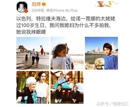 刘烨发微博表示为了庆祝太姥姥100岁生日,在以色列游玩。除了一张背影出镜的照片,其余都是诺一霓娜的美照。