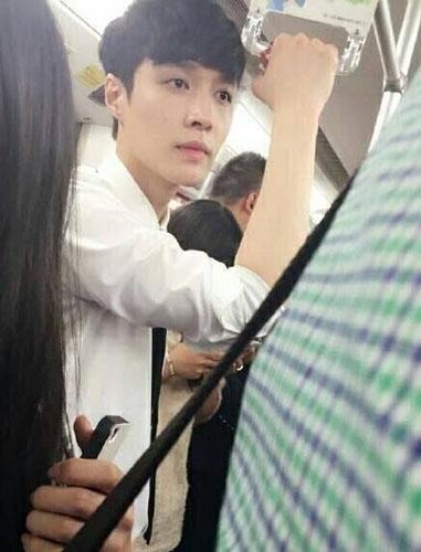 这个应该是鸡条里艺兴被抢了金条搭地铁时抓拍的吧。