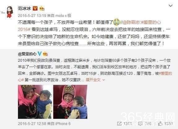 平时的范爷就会做一些公益活动,为孩子们捐钱捐物,也经常会在微博上号召大家都关注公益,也会去看望自己资助的失学儿童们。