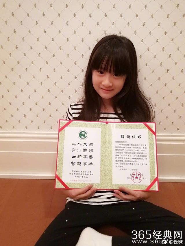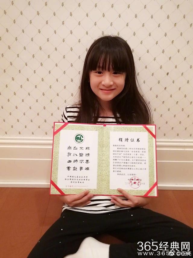 最近,田亮在自己的微博上面晒出了两张女儿森碟的照片,小姑娘比以前越发出落的活泼可人了,照片上的森碟举着自己后援会的捐助树苗证书对着镜头甜甜的笑着