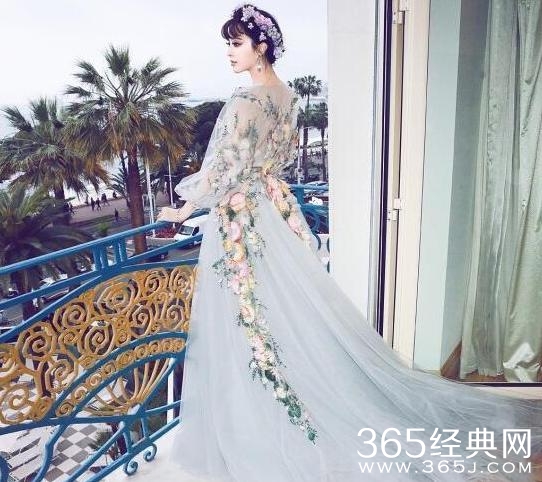 戛纳国际电影节颁奖典礼红毯上,范冰冰的礼服上绣翅引吭的仙鹤,唯美的鹤舞九天图案在拖地裙摆上尽显大气。