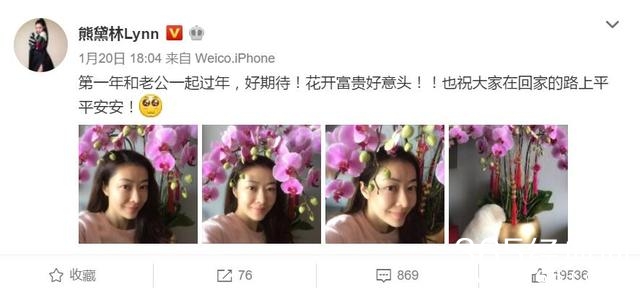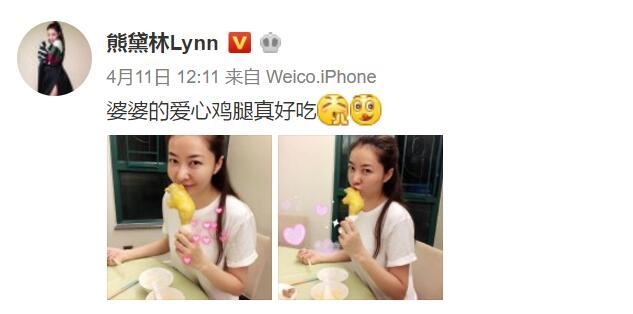 熊黛林自从结婚后,也会在微博上不时秀恩爱。