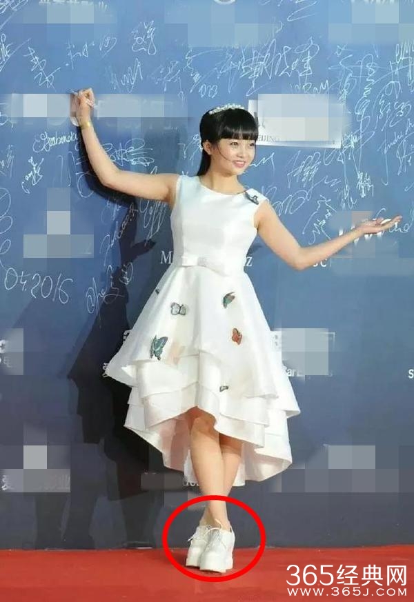 不过,林妙可的厚底鞋就稍微显得有些尴尬了,厚底鞋底太厚会容易显得脚大哦,幸好身上的裙子给林妙可扳回一半的气质啦~