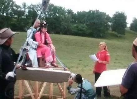 下面这是谁还帮忙举着“缰绳”....这种都算好的了,还有一种就比较辛苦剧组的小哥哥们了: