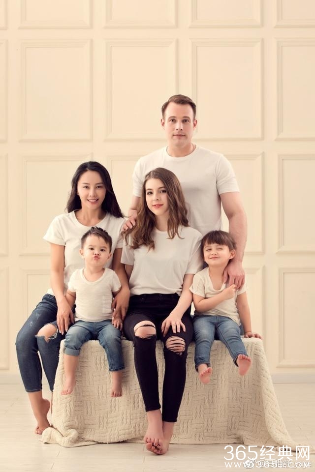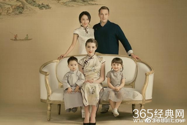 虽然老公是外国人,但是还是入乡随俗和马雅舒拍了中国风的全家福~一家五口的样子看起来非常幸福!