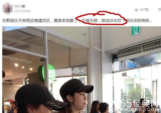 有网友之前在韩国旅游的时候偶遇了洪欣,因为没有化妆的原因加上这是个人的行程,洪欣便拒绝了网友拍照的请求。