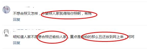 不过看网友的评论,网友们对这种被拒绝拍照还偷拍丑照放到网上的行为还是很反感的。