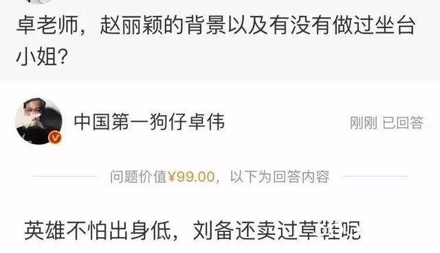 赵丽颖这一路走来,相当不容易,不是科班出身,熬了十年才终于当上了女主。连到处爆料的卓伟都对赵丽颖评价颇高“英雄不问出处,刘备还卖过草鞋呢”