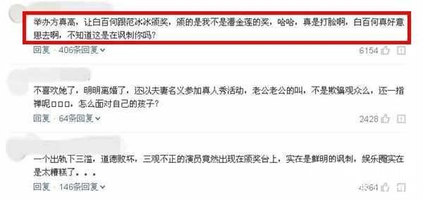 公道自在人心,对于白百何的颁奖,有网友调侃“举办方真高,让白百何跟范冰冰颁奖,颁的是我不是潘金莲的奖,哈哈,真是打脸啊,白百何真好意思去啊,不知道这是在讽刺你吗?”真是高手在民间啊,我服。