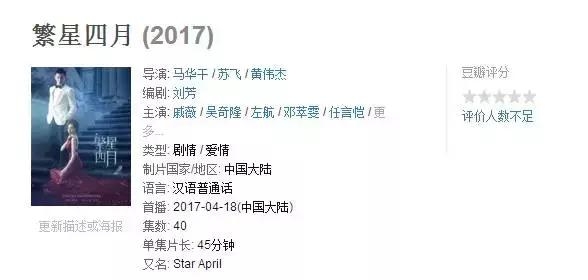 接着咱们看看《繁星四月》和《继承人》,这两部电视剧的现状几乎可以用两个字形容:扑街。
