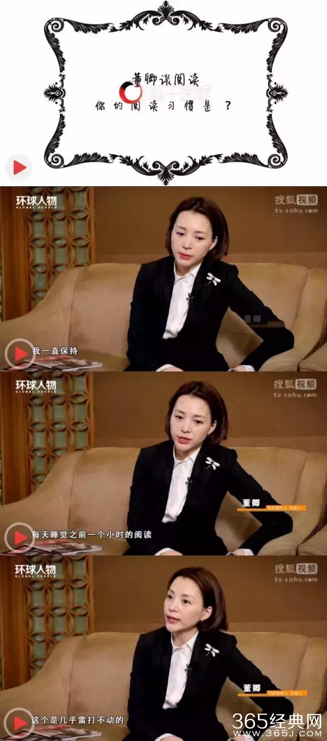 董卿有一个习惯很耐人寻味,她的卧室里没有电视、没有手机、没有一切电子产品,睡前的时间她只留给阅读,“安安静静的看会儿书就可以睡觉了”。