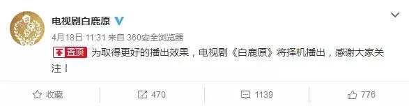 对此,《白鹿原》剧组并没有给出正面答复,只表示开播时间待定,还会与大家见面。
