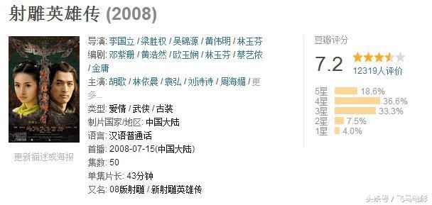 2,2008版《射雕英雄传》,豆瓣评分7.2
