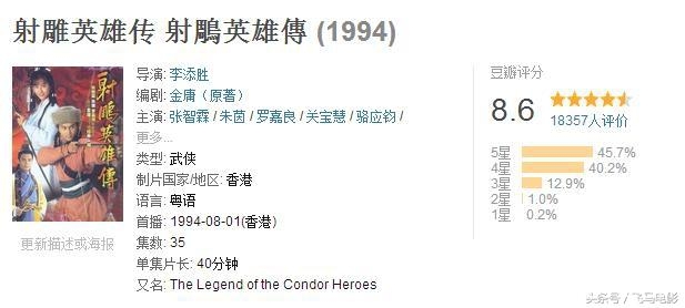 4,1994版《射雕英雄传》,豆瓣评分8.6