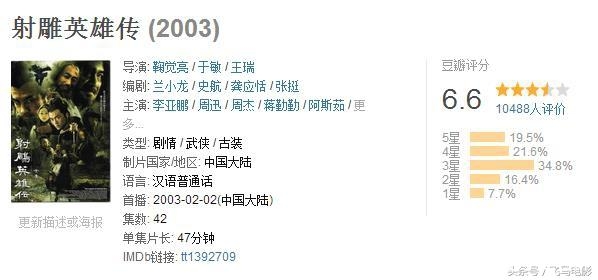 3,2003版《射雕英雄传》,豆瓣评分6.6