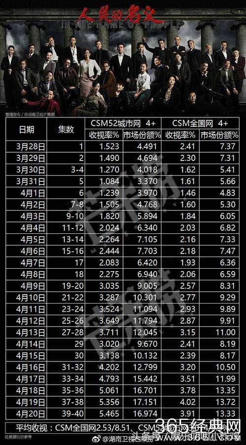 湖南卫视2017反腐大剧人民的名义播出至第40集收视一览